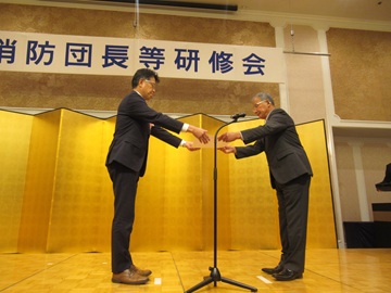健治氏(元 旧久米町消防団長)の自治体消防発展